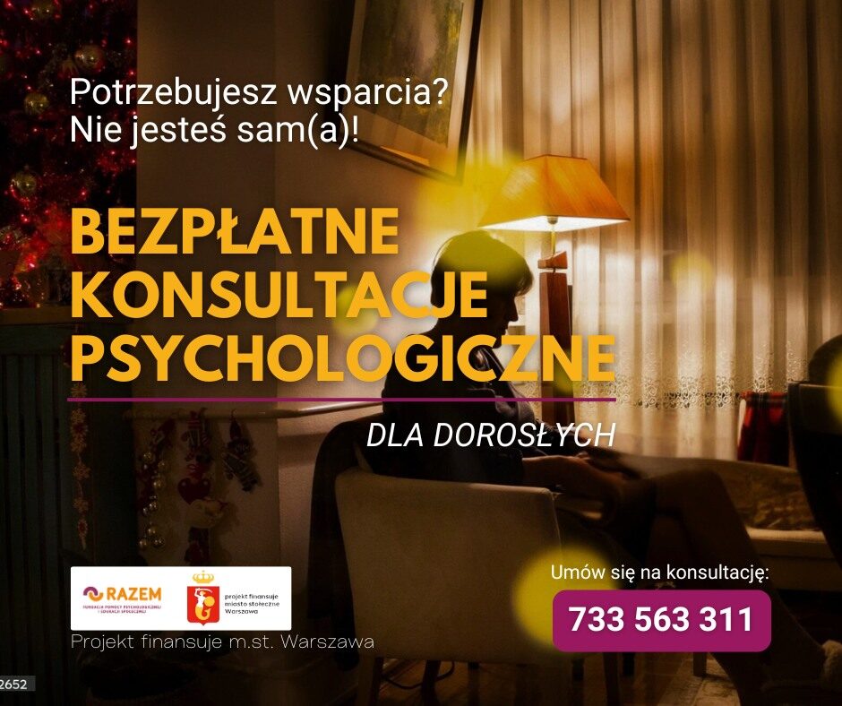 Zapraszamy na bezpłatne konsultacje psychologiczne dla dorosłych mieszkańców Warszawy.