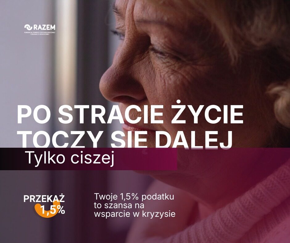 Twój 1,5% podatku pomaga nam zapewniać profesjonalną pomoc psychologiczną osobom w kryzysie.